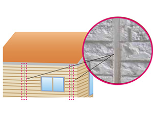 外壁の目地に入っているコーキングは、雨水の侵入を防ぎ、建物の防水性や気密性を保つ大切な役割があります。紫外線や雨、熱、建物の揺れの影響で徐々に硬化し、ヒビ割れや肉やせが起こります。劣化を放置すると、すき間から雨水が入り込み、外壁材や下地の傷み、雨漏りにつながる恐れがあります。打ち替えによって防水性と耐久性を維持し、住まいを長く守ることができます。