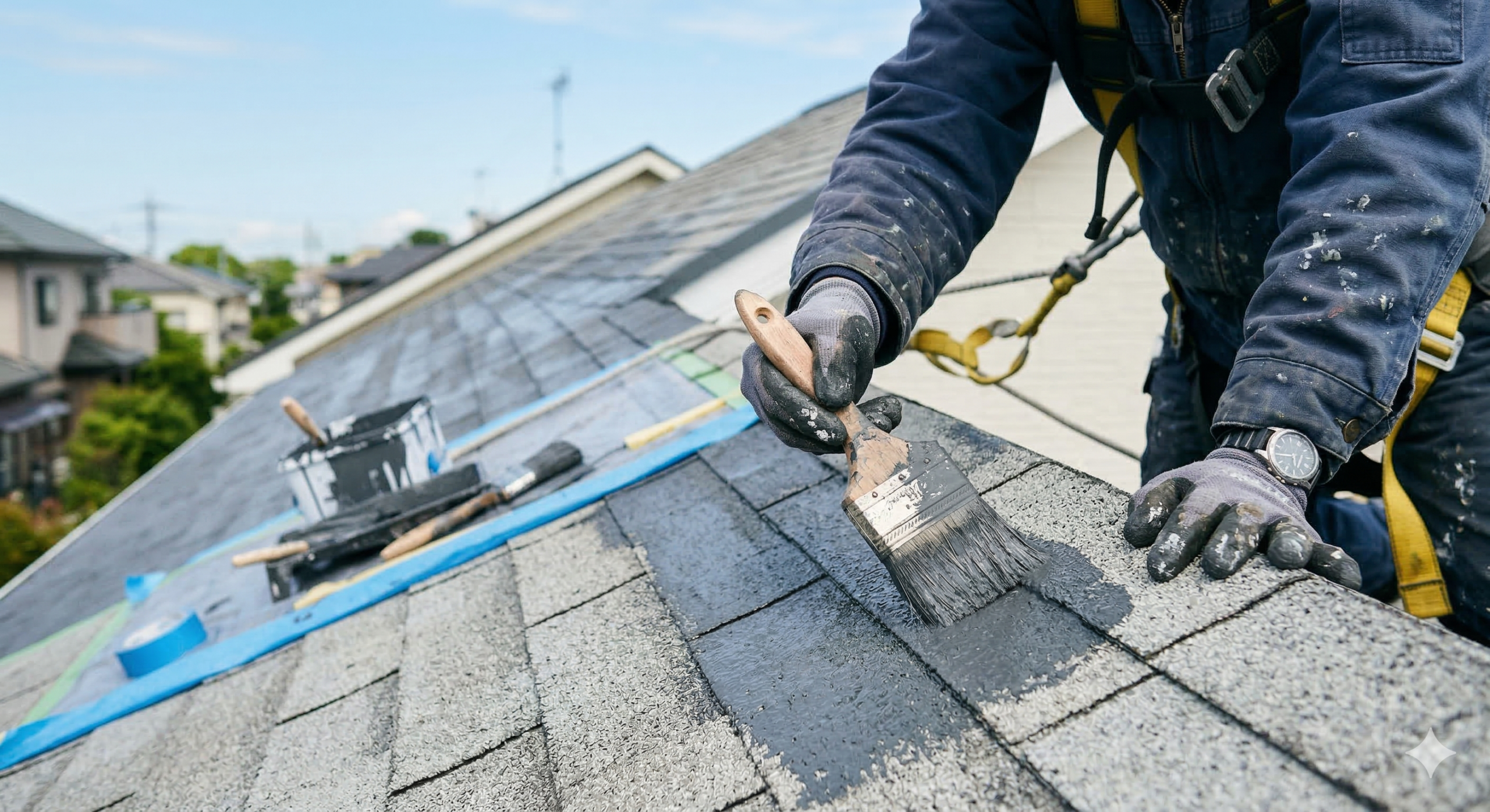 屋根塗装は、紫外線や雨風で劣化した屋根材を塗膜で保護し、住まいを長く守るために行う大切なメンテナンスです。防水性や耐候性を高め、屋根の寿命を延ばす役割があります。中でも無機塗料は、塗料の中でも最高クラスの耐久性を持ち、紫外線に強く劣化しにくいのが特徴。長期間美しい状態を保ちながら、屋根をしっかり守ります。