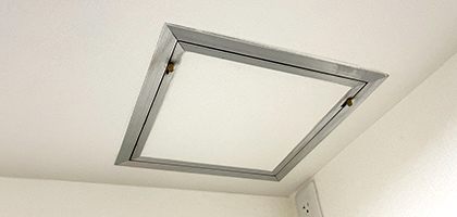点検口がない場合や潜れなかった場合は天井点検口を取付けて雨漏り発生箇所を明確にします。