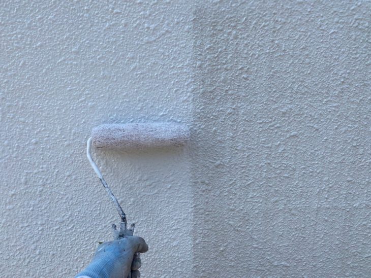 続いては、外壁、付帯部の塗装を行っていきます。外壁は白を基調としていおり、赤い屋根と白い壁のコントラストがとても素敵なお宅です。