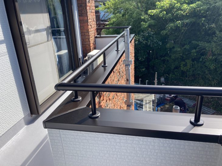 アルミやサッシの部分は塗装することができないため、今回はベランダの笠木(かさぎ)の交換も行いました。