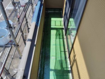 屋根外壁付帯部の塗装作業が終わったら、ベランダの防水工事を行っていきます。