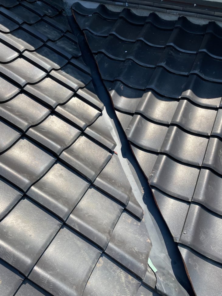 その後、新しい防水シートを敷き、新しい谷板金を取り付け、最後に、瓦を元に戻して完了となります。