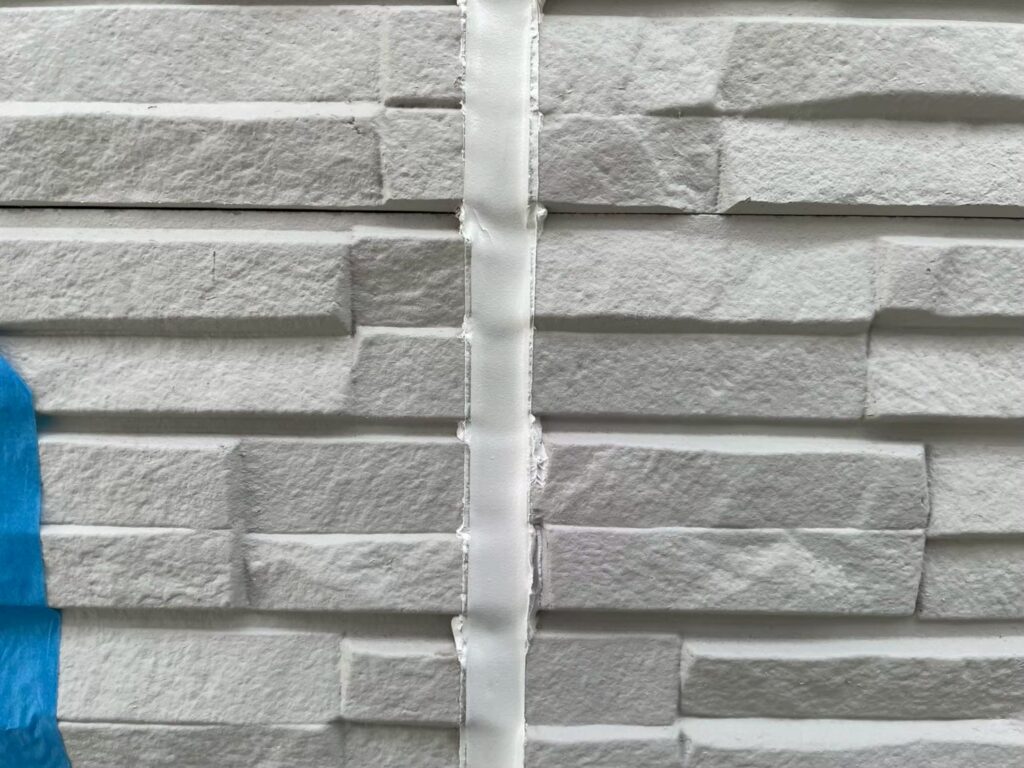 工事は、既存コーキングの撤去または下地調整を行ったうえで、マスキング・プライマー塗布・コーキング充填・ヘラ押さえの順に進め、丁寧に仕上げています。