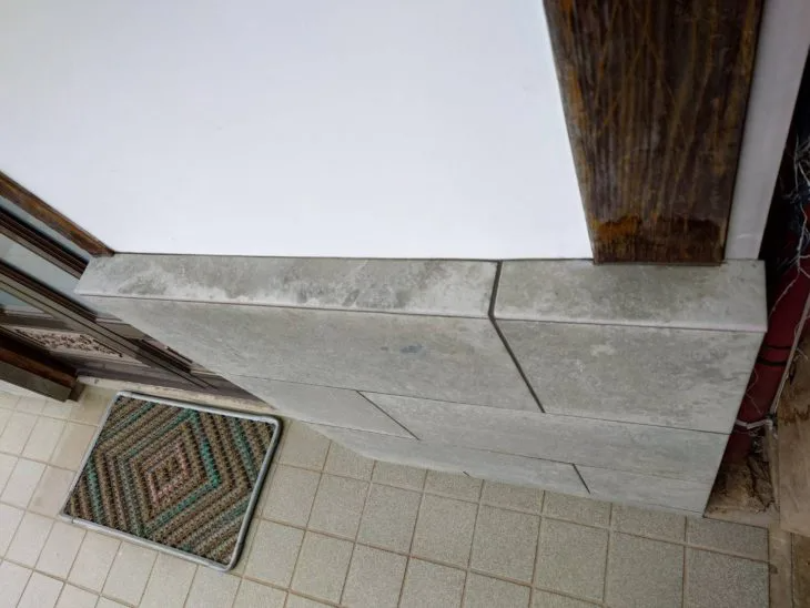玄関横のタイルとして使われている壁面石材の角や上側に割れや欠けができていて、このままでは見た目だけでなく傷みの進行も心配だったため、補修できないかとご相談しました。